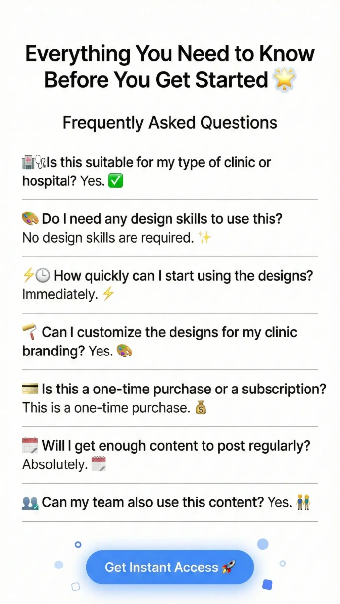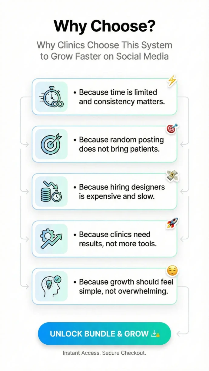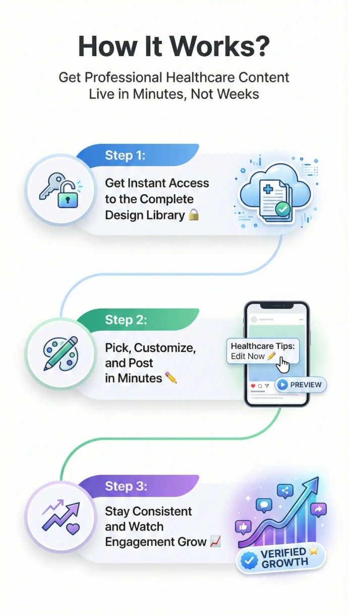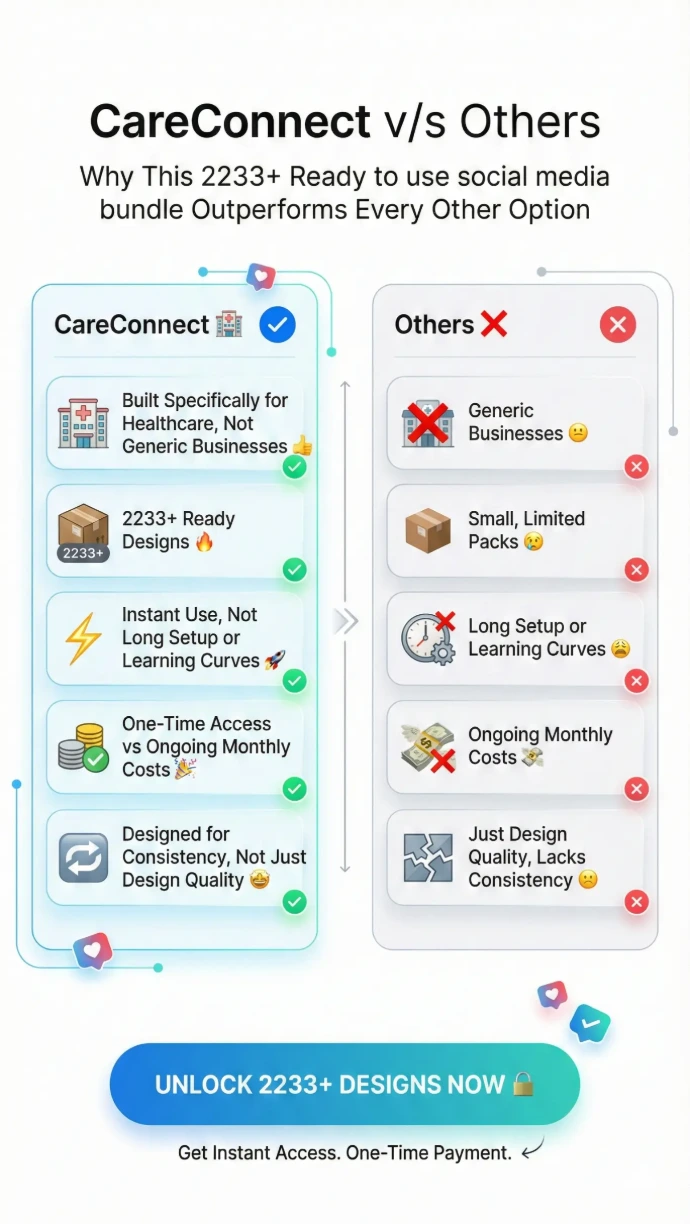 You’ll receive a comprehensive, ready-to-use social media post bundle specifically designed for clinics, hospitals, and individual doctors.
