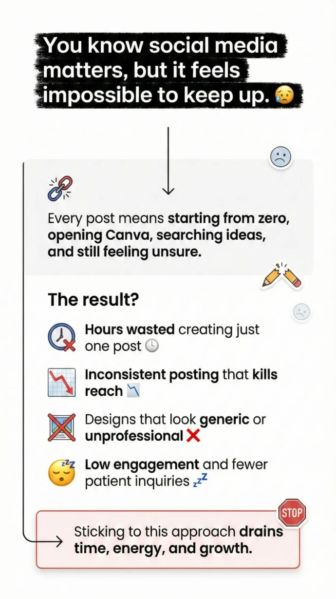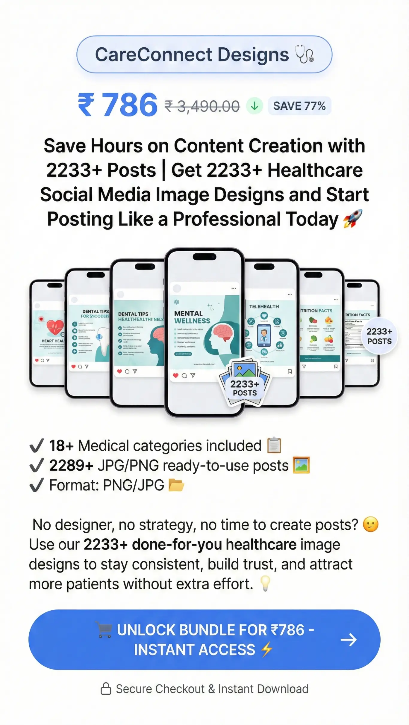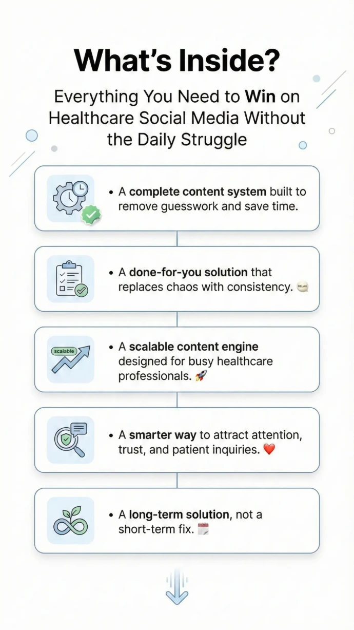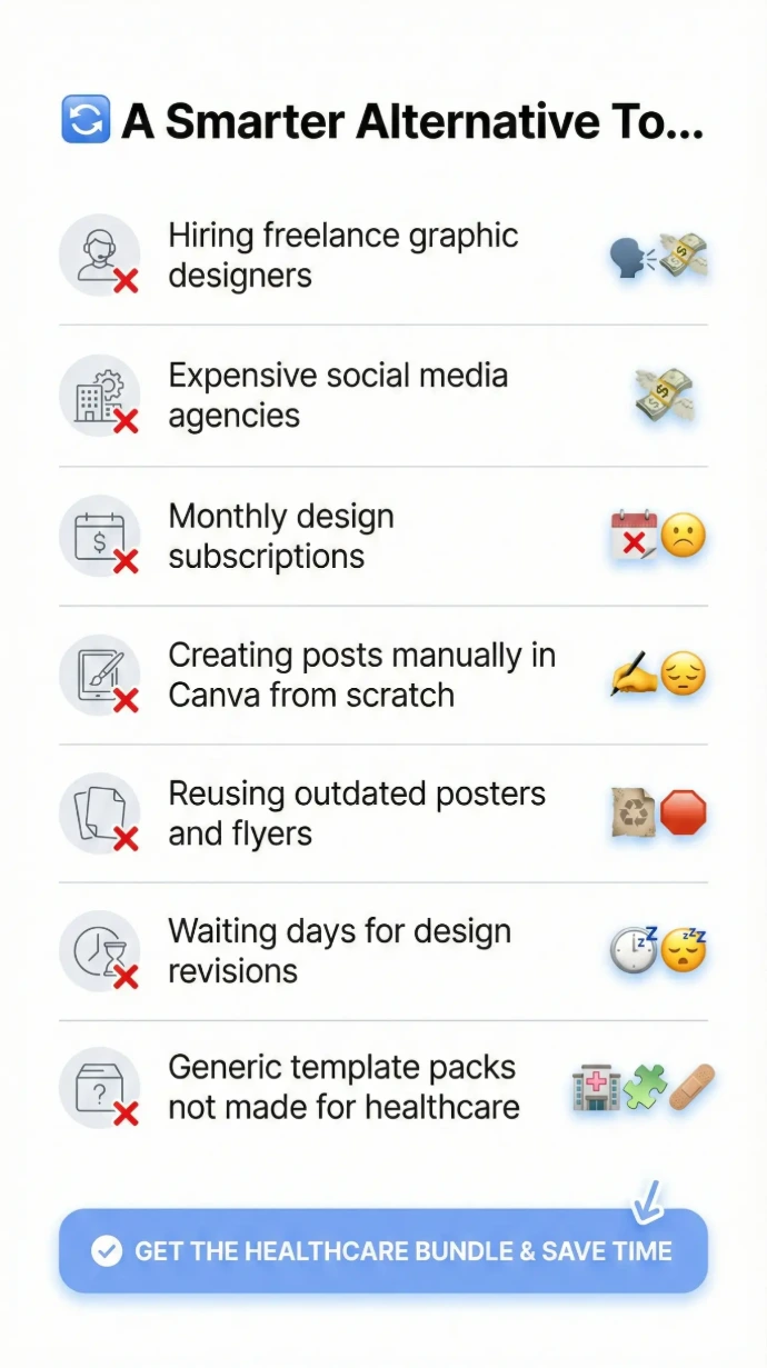 You’ll receive a comprehensive, ready-to-use social media post bundle specifically designed for clinics, hospitals, and individual doctors.